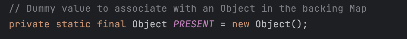 또 HashSet의 add메소드를 보면 map에 key에 객체를 넣고 value에 더미값(new Object)을 넣는다.