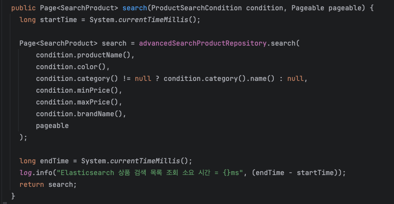 상품검색시 조회되는 쿼리 데이터를 엘라스틱서치 index로 설정