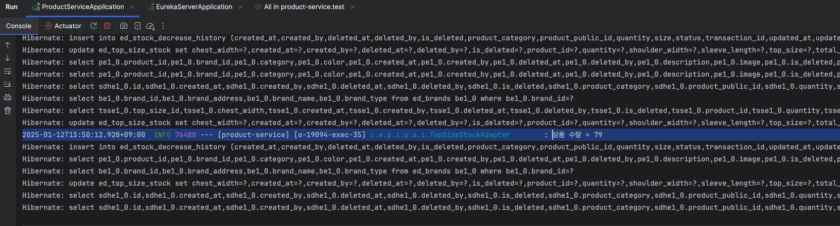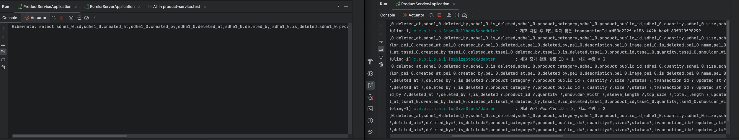 - 실제 상품 재고 - 0개 (초기 100개에서 모두 차감)